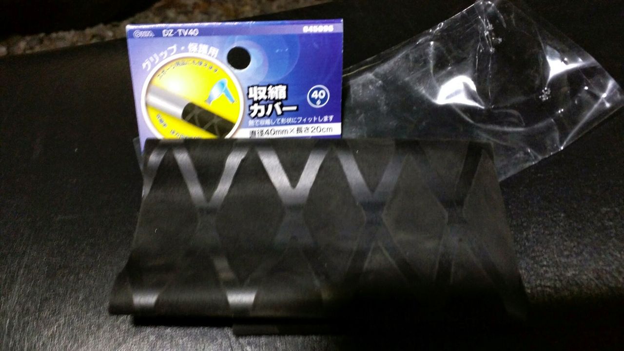 やり方は簡単、ハンドルのグリップに収縮チューブ差し込んで