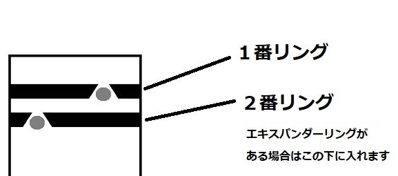 ピストンリングはう上下方向があるものや2本リングの場合1番(ピストンの上側)と2番リング(下側)の2種類ある場合があります。