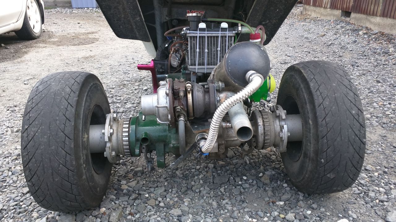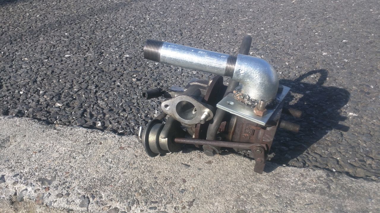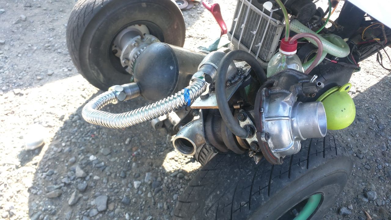 タービンは、2サイクルエンジンの排ガスの圧力でも回せる事がわかりました。