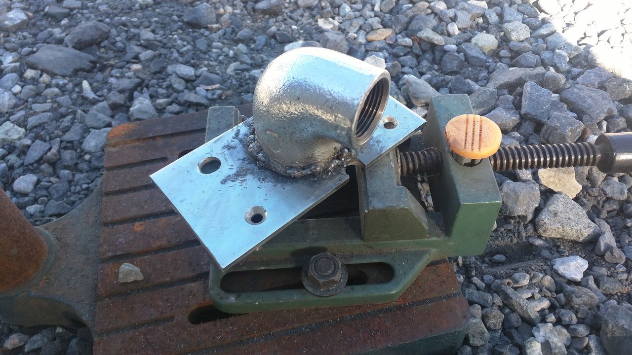 エルボーを建材の金具?を利用して溶接しました。