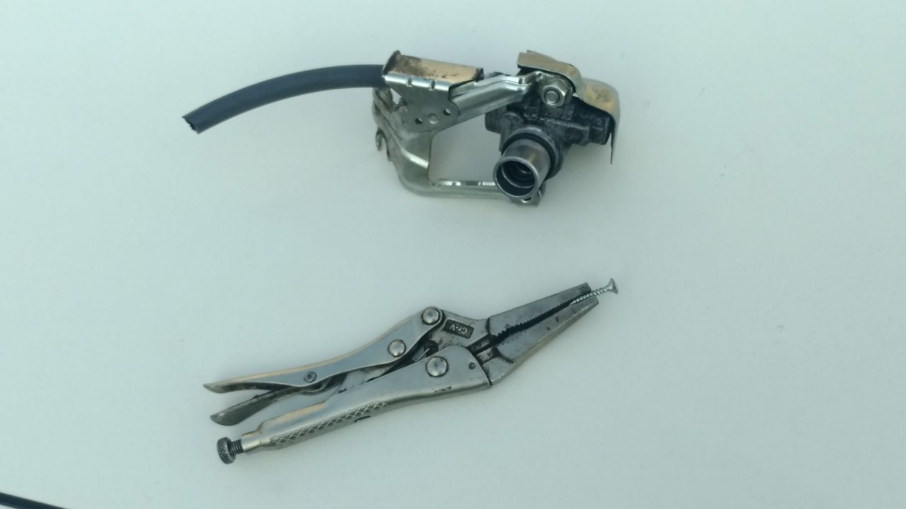こんな感じでバイスプライヤーで挟んで作業すると楽に出来ます。
