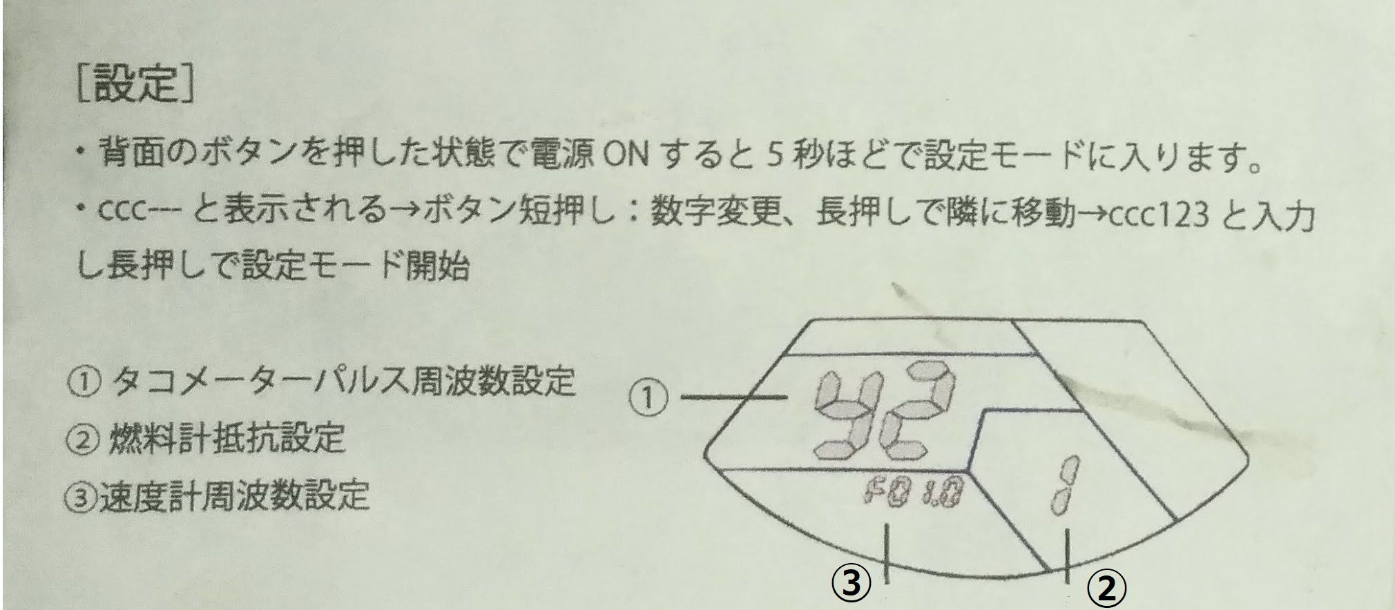そして設定ボタンを押したままキーONにすれば設定モードに出来るかと思います。